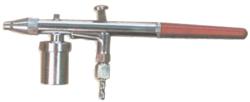Aeropenna a doppia azione fissa con miscelazione interna funzionante per aspirazione. Serbatoio inferiore filettato in ottone nichelato. E’ possibile effettuare ampi movimenti grazie al serbatoio ermetico, all’uso dei colori che precipitano senza pericolo di intasamento e al serbatoio rapidamente intercambiabile. Particolarmente indicato per modellismo, ceramiche e hobbysmo. Disponibile normalmente con foro di erogazione ø 0,3.