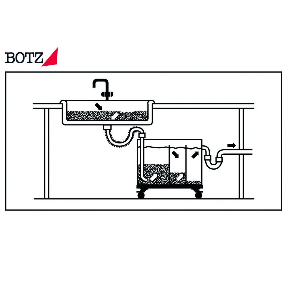 La vasca di decantazione TA 103 è stata sviluppata da BOTZ a Münster - Germania come sistema di purificazione delle acque reflue in miniatura (3 camere di decantazione Idoneo per tutti gli studi di ceramica e scultura.