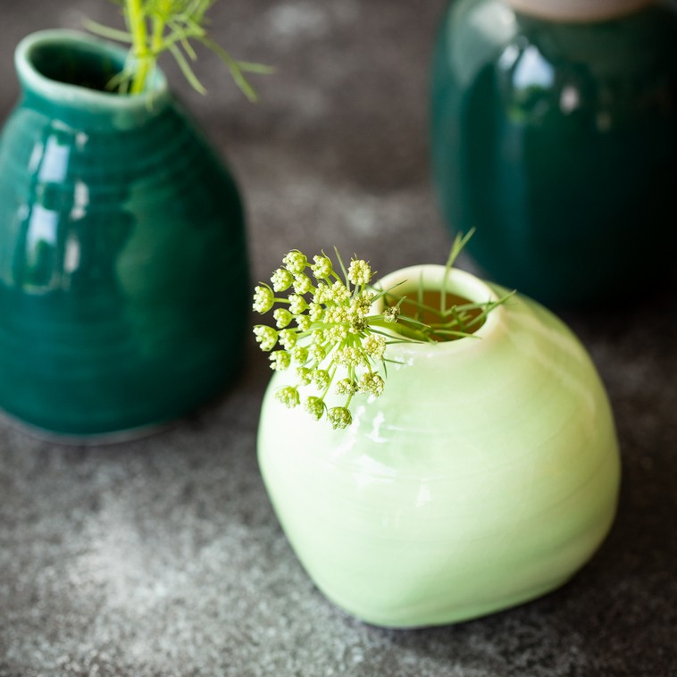 - A 1250 °C: superficie vetrosa, semitrasparente con intense tonalità pastello, fantastica anche su massa porcellanata / applicare due strati